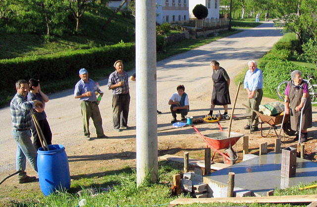 Prvo raspelo su nabavile mještanke, a drveni, lijepo oblikovani križ izradio je majstor uz čiju kuću je tada postavljeno. Nakon toga je dva puta premještano. Dotrajali drveni križ srušio se 2004. godine a požrtvovnošću mještana raspelo je obnovljeno i ponovno postavljeno 2005. godine ali na novo, zajednički odabrano mjesto.